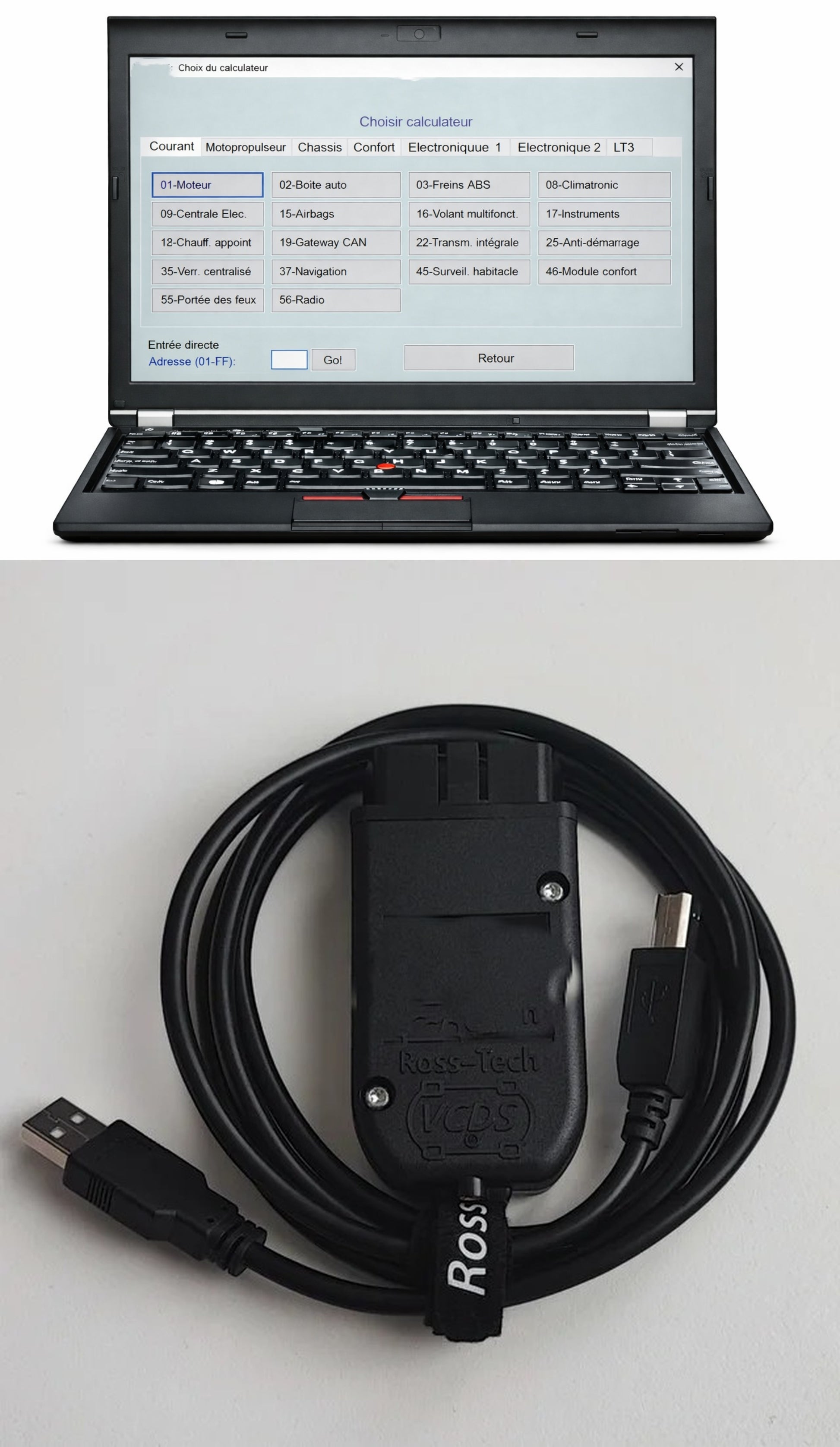 🔧 Interface + logiciel de diagnostic spécialisé